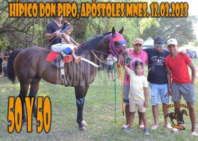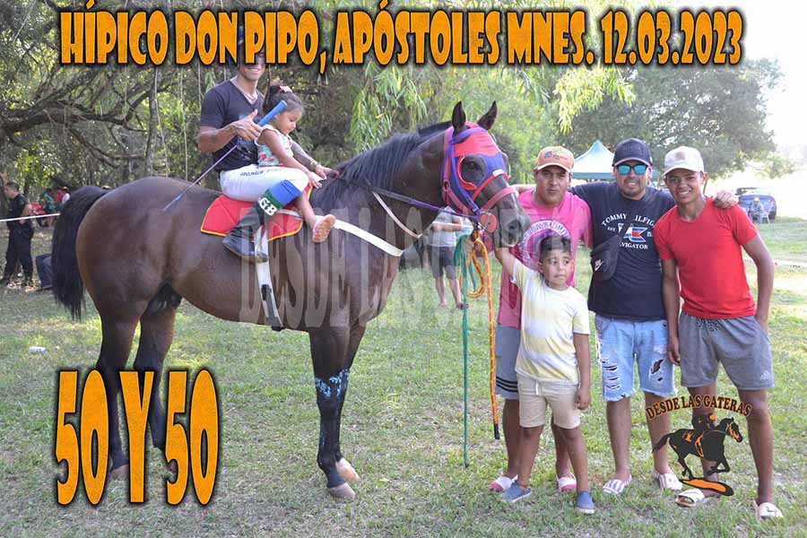 50 Y 50 – DON PIPO – 12-3-23 Mar 20, 2023 | RESULTADOS HIPICO DON PIPO. APOSTOLES, MISIONES. 12-03.2023 CLASICO – MOSTRO – 50 y 50 CARRERON