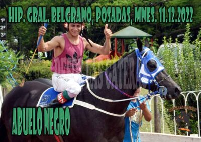 ABUELO NEGRO – GRAL BELGRANO – 11-12-22 Dic 20, 2022 | RESULTADOS HIPODROMO GENERAL BELGRANO, POSADAS, MISIONES 11.12.2022 CLASICO ABUELO NEGRO – SI QUERIDO UN ABUELO CON EXPERIENCIA