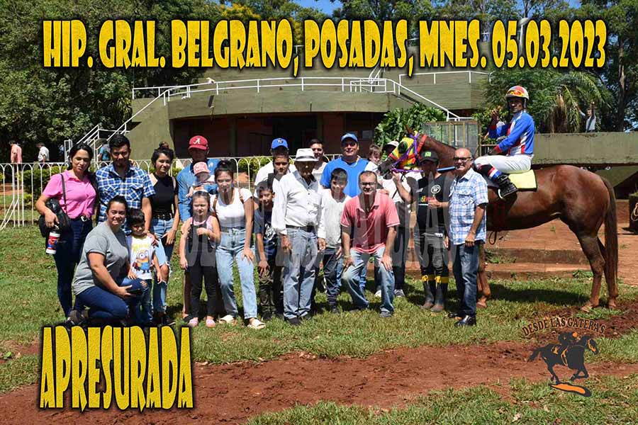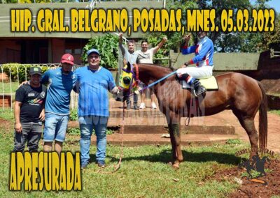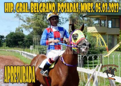 APRESURADA – GRAL BELGRANO 5-3-23 Mar 13, 2023 | RESULTADOS JOCKEY CLUB GENERAL BELGRANO, POSADAS, MISIONES 05.03.2023 PERUANO – APRESURADA ANDUBO RAPIDO