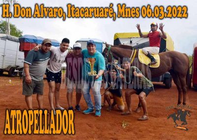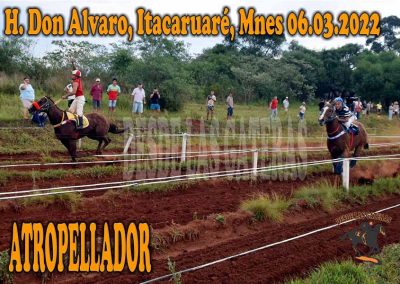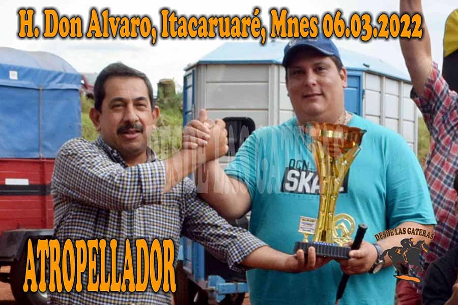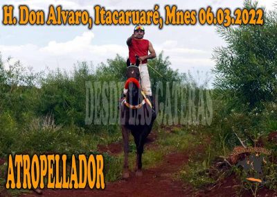 ATROPELLADOR POR EL BUEN CAMINO – HÍPICO DON ALVARO, ITACARUARÉ 05.06 y 03.2022 Mar 15, 2022 | RESULTADOS HÍPICO DON ALVARO ITACARUARE….05.03.2022 LA MITICA RECTA MISIONERA. CLASICO – ATROPELLADOR – QUITAPENA… ATROPELLADOR POR EL BUEN CAMINO