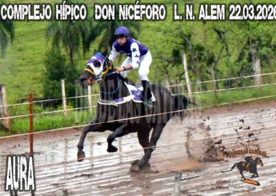 AURA – COMPELJO HIPICO DON NICÉFORO, LEANDRO N ALEM, MISIONES 22.03.2026 Abr 11, 2026 | RESULTADOS, Sin categoría APROVECHO AURA A LA VOZ DE AURA Una nueva victoria de la yegua de ALVAREZ para ya una interesante campaña.
