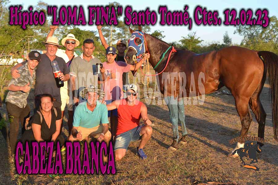 CABEZA BRANCA – LOMA FINA – 12-2-23 Feb 16, 2023 | RESULTADOS HIPICO LOMA FINA – SANTO TOME – CORRIENTES – 12.02.2023 CLASICO – CABEZA BRANCA – CARAMBOLA – PANTUFLA SACO CABEZA