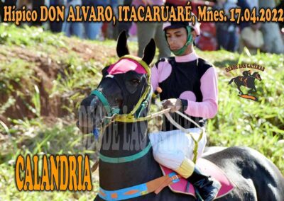 CALANDRIA – DON ALVARO – 17-4-22 Abr 20, 2022 | RESULTADOS Hípico DON ALVARO, Itacaruaré, La recta convocante misionera CLASICO – BANDOLERO – CALANDRIA CANTO LA CALANDRIA
