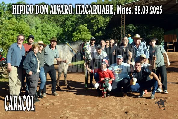 CARACOL…CARACOL – HIPICO DON ALVARO, ITACARUARE, MISIONES 28.09.2025 Oct 3, 2025 | RESULTADOS, Sin categoría UN CARACOL SACO SUS CUERNOS AL SOL Fue un carrerón que se definió a favor del pingo al cuidado por BASHIÑO en el stud LOS PREOCUPADOS en Aristóbulo del Valle por un mínimo margen.