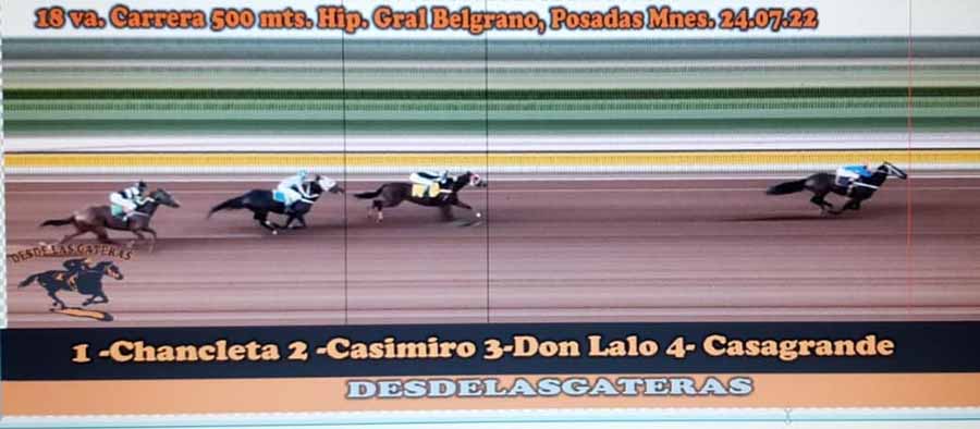 CHANCLETA – 24-7-22 – H. GRAL BELGRANO Jul 25, 2022 | RESULTADOS 18va carrera ganador Chancleta de Delgado de La Cruz J. C. GRAL. BELGRANO. «EL COLOSO MESOPOTAMICO» DON LALO – CHANCLETA – CASIMIRO – CASAGRANDE UNA DESTACADA CHANCLETA