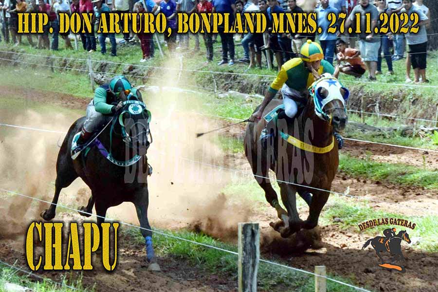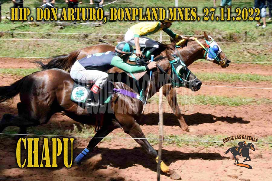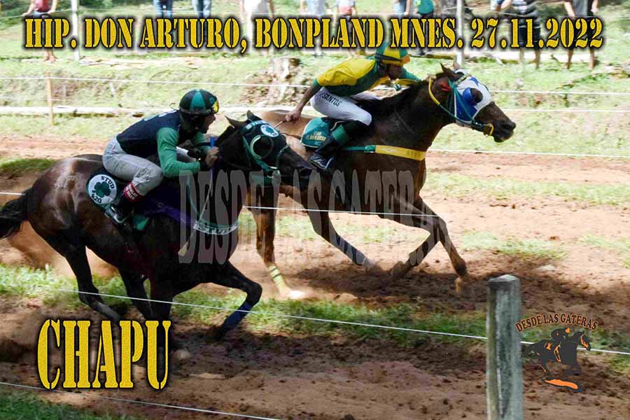 CHAPU – DON ARTURO – 27-11-22 Nov 30, 2022 | RESULTADOS HIPICO DON ARTURO, BONPLAND, MISIONES. CLASICO M. R. – CHAPU VIBRANTE CHAPU