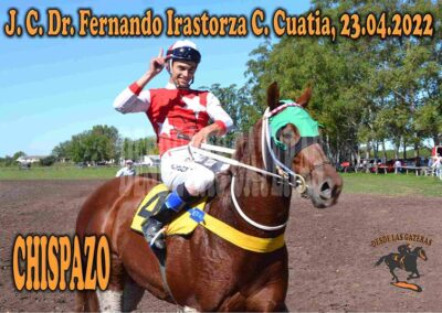 CHISPAZO – DR FERNANDO IRASTORZA 23-4-22 Abr 25, 2022 | RESULTADOS 3ra Carrera Jockey Club Dr. Fernando Irastorza Ganador CHISPAZO de ROMERO/VILLAVERDE de Mercedes