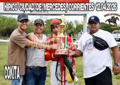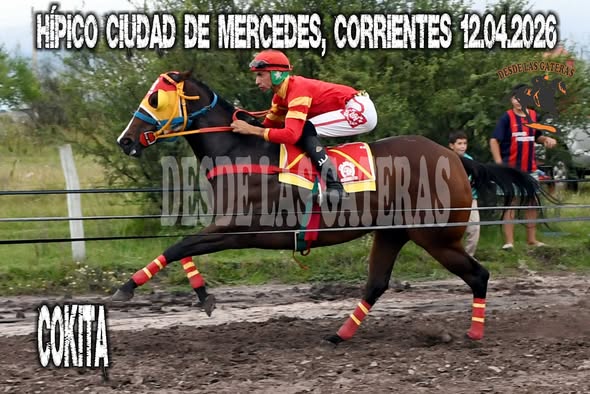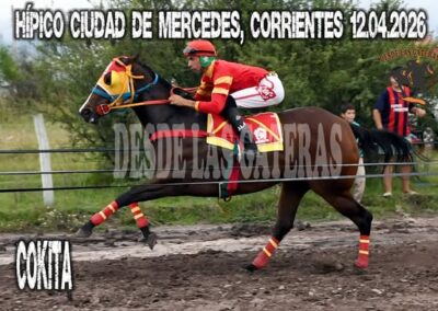 COKITA – HIPICO CIUDAD DE MERCEDES, CORRIENTES 12.04.2026 Abr 25, 2026 | RESULTADOS, Sin categoría COKITA SE ENTONÓ COKITA Y UN AUSPICIOSO DEBUT… Con las expectativas lógicas que origina un debut, la yegua de la familia SANCHEZ, que cuida, entrena y conduce JOSE AMARILLA, supero con éxito su primera presentación.