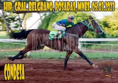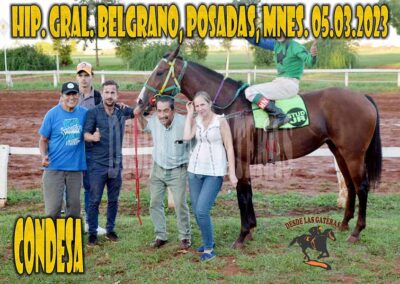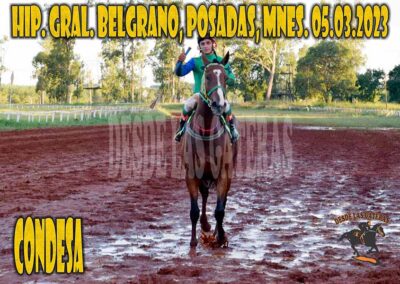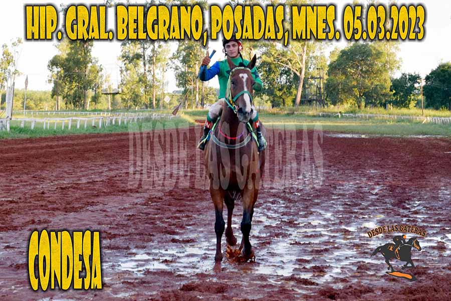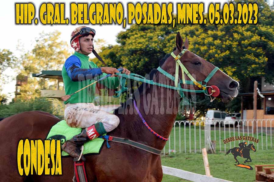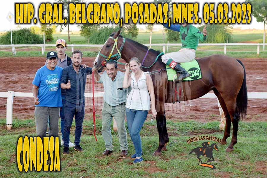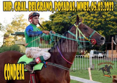 CONDESA – GRAL BELGRANO 5-3-23 Mar 10, 2023 | RESULTADOS JOCKEY CLUB GENERAL BELGRANO, POSADAS, MISIONES 05.03.2023 CLASICO – 4 DE COPAS – CONDESA UNA BELLA CONDESA