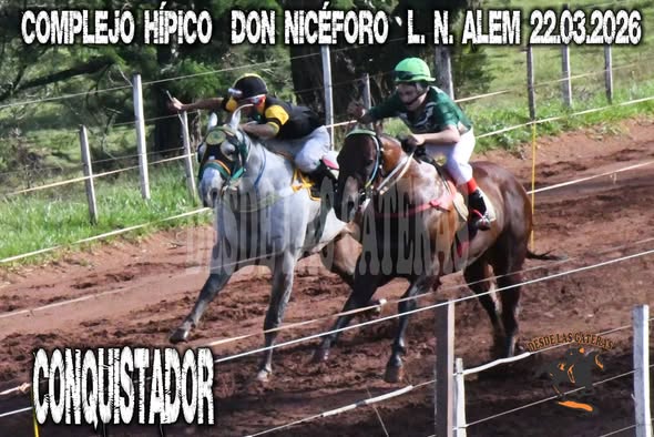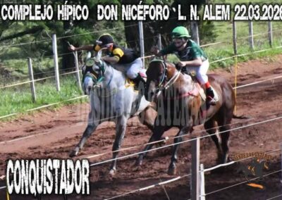 CONQUISTADOR – CLASICO – C. H. DON NICEFORO, L.N.ALEM, MISIONES 22.03.2026 Abr 11, 2026 | RESULTADOS UNA NUEVA CONQUISTA DEL CONQUISTADOR SU CONQUISTA FUE UNA GANGA… Hermoso clásico para una gran carrera de amigos que se definió para el que defiende los colores del stud DON MARIO en Aristóbulo del Valle por escaso margen.