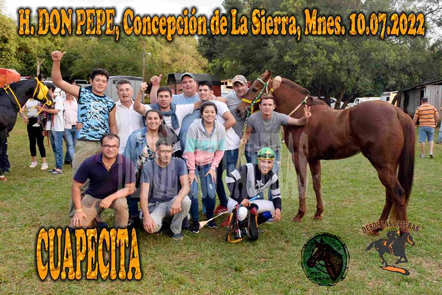 CUAPECITA – ELISEO – UN LAZO PARA CADA UNO PARA QUEDAR A MANO Jul 12, 2022 | RESULTADOS HÍPICO «DON PEPE» CONCEPCIÓN DE LA SIERRA, Mnes. 10.07.2022 CLASICO CENTRAL A DOS RAYAS… CUAPECITA – ELISEO UNA LAZO PARA CADA UNO PARA QUEDAR A MANO