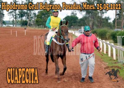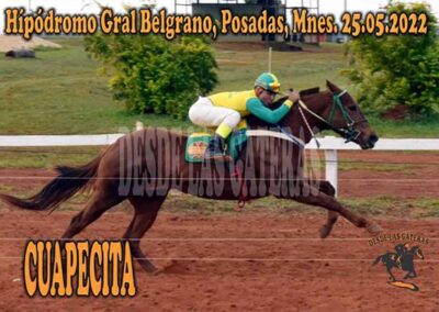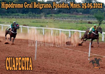 CUAPECITA – GRAL BELGRANO – 25-5-22 May 26, 2022 | RESULTADOS 7ma Carrera Ganadora CUAPECITA de stud «El Mangal» Posadas