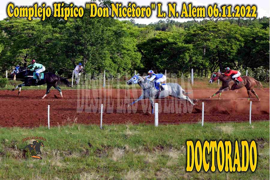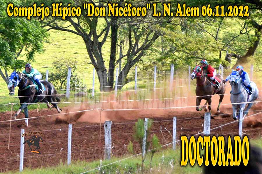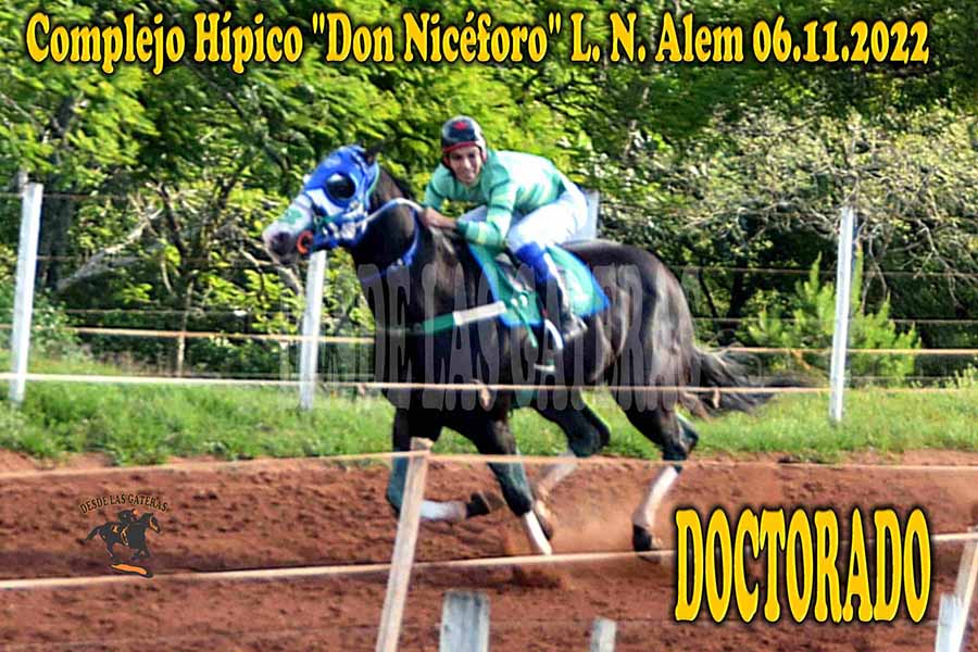 DOCTORADO – DON NICEFORO – 6-11-22 Nov 7, 2022 | RESULTADOS COMPLEJO HÍPICO DON NICEFORO – L. N. ALEM,MISIONES 06.11.2022 LAKE PARADISE – NICOLE – DOCTORADO APRROBO LA MATERIA