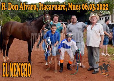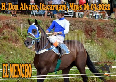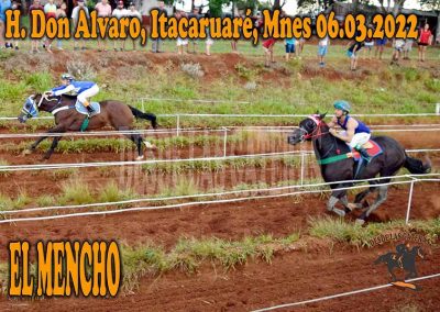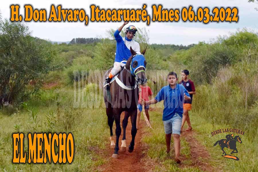 EL MENCHO METIO LA SEGUNDA – HÍPICO DON ALVARO, ITACARUARÉ 05.06 y 03.2022 Mar 15, 2022 | RESULTADOS HÍPICO DON ALVARO ITACARUARE….06.03.2022 LA MITICA RECTA MISIONERA. CLASICO -NIÑA MALVADA – EL MENCHO… EL MENCHO METIO LA SEGUNDA