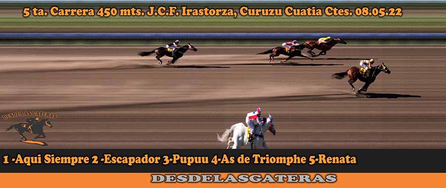 Fotocharts Hipico Dr. Fernando Irastorza – 8-5-22 May 9, 2022 | FOTOCHARTS Estos son los fotocharts correspondientes a la jornada del día 08-5-22 en el Hípico Dr. Fernando Irastorza
