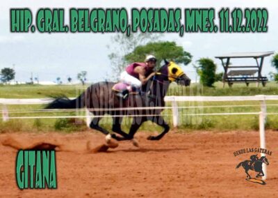 GITANA – GRAL BELGRANO – 11-12-22 Dic 22, 2022 | RESULTADOS HIPODROMO GENERAL BELGRANO, POSADAS, MISIONES 11.12.2022 EL PIQUE – GITANA GITANA PREDIJO SU FUTURO
