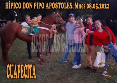 CUAPECITA – HIPICO DON PIPO – 8-5-22 May 9, 2022 | RESULTADOS 8va carrera Hipico DON PIPO Apóstoles, Clasico Central Ganadora CUAPECITA de Stud El Mangal de Posadas
