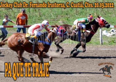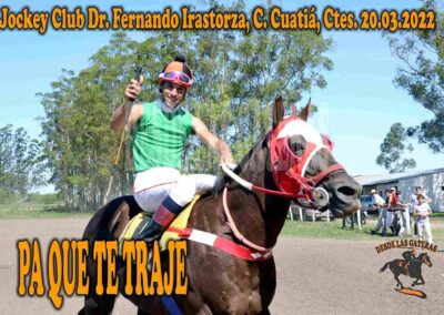 J. C. Dr. Fernando Irastorza – 20.03.2022 – PA QUE TE TRAJE JUSTIFICÓ PARA QUE LO TRAJERON Mar 25, 2022 | RESULTADOS JOCKEY CLUB DR. FERNANDO IRASTORZA. CURUZU CUATIA CTES. 20.03.2022 CLASICO – ELEGANTE – PA QUE TE TRAJE – RICACHONA JUSTIFICÓ PARA QUE LO TRAJERON