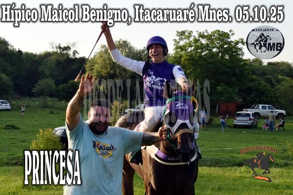 LA LUZ DE PRINCESA HIPICO MAICOL BENIGNO, ITACARUARE, MISIONES 05.10.2025 Oct 20, 2025 | RESULTADOS, Sin categoría LA LUZ DE PRINCESA TODO FUE DE LA PINCESA Con mucha autoridad y simpleza, la yegua volvió a erigirse como vencedora en una actuación contundente.