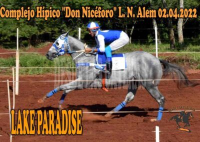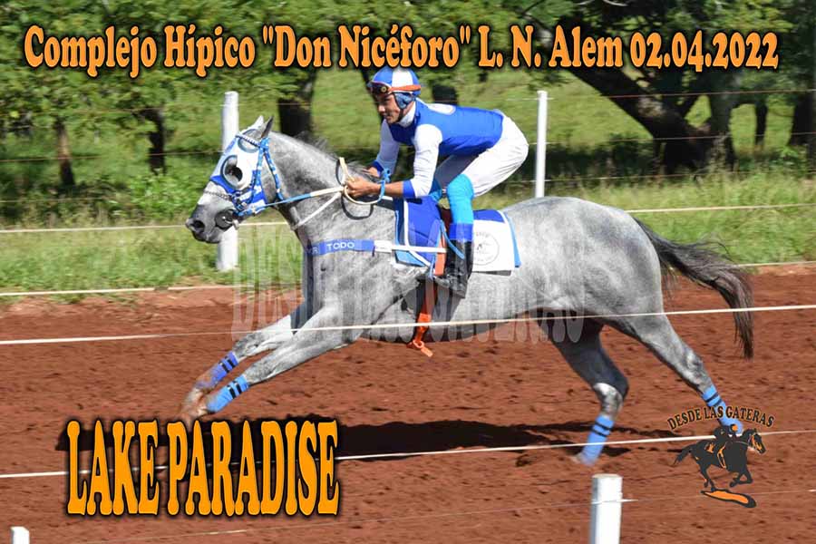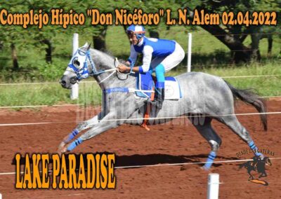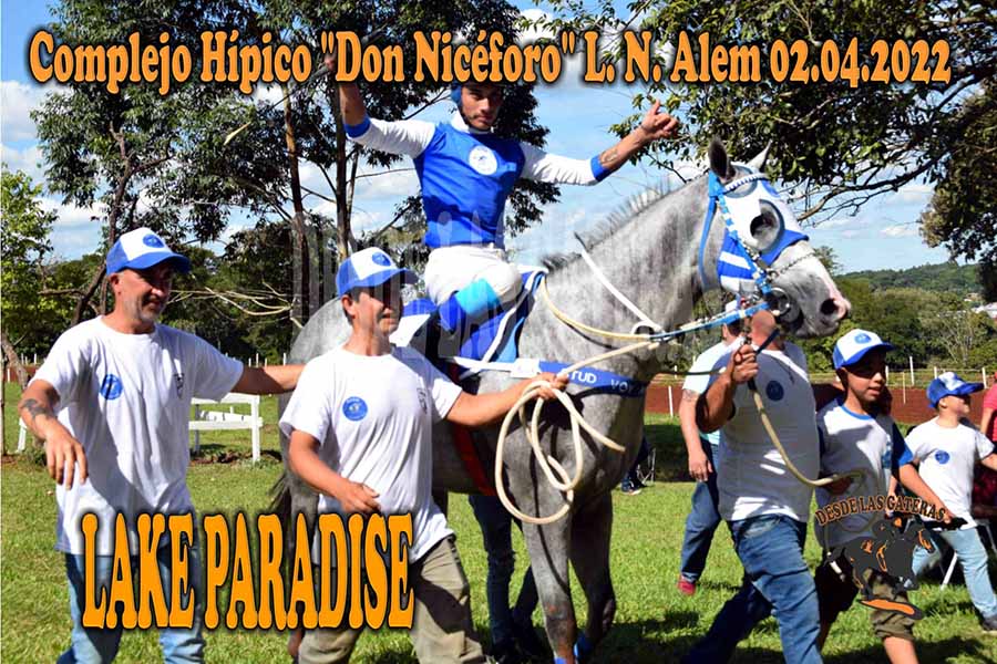 LAKE PARADISE – DON NICÉFORO L. N ALEM 2-4-22 Abr 4, 2022 | RESULTADOS POLLA DE POTRILLOS . TORNEO INICIO . COPA HARAS PRATA 3RA. CLASIFICATORIA COMPLEJO HIPICO DON NICÉFORO . 02.04.2022 LAKE PARADISE – PATROA TELLER – ESPERTA GOLD PARADISIACO ACCIONAR DE LAKE PARADISE