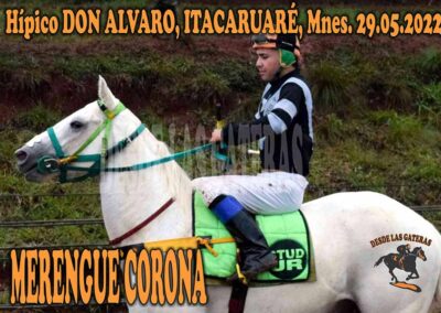 MERENGUE CORONA – DON ALVARO – 29-5-22 May 31, 2022 | RESULTADOS 10 MA POLLA POTRILLOS HARAS LAS 3 AGUAS. HÍPICO DON ALVARO ITACARUARÉ 29.05.2022 MERENGUE CORONA Y SU DULCE SABOR