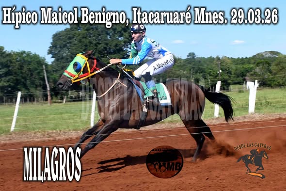 MILAGROS – HIPICO MAICOL BENIGNO – ITACARUARE 29.03.2026 Abr 11, 2026 | RESULTADOS, Sin categoría UN MILAGROS MAS DE MILAGROS EN MILAGROS… En una cancha que le sienta muy bien, la yegua a JAVIER KRAYESKI que defiende los colores del stud DON RICARDO en APÓSTOLES, pasó con esmero el escollo que le significó su rival.