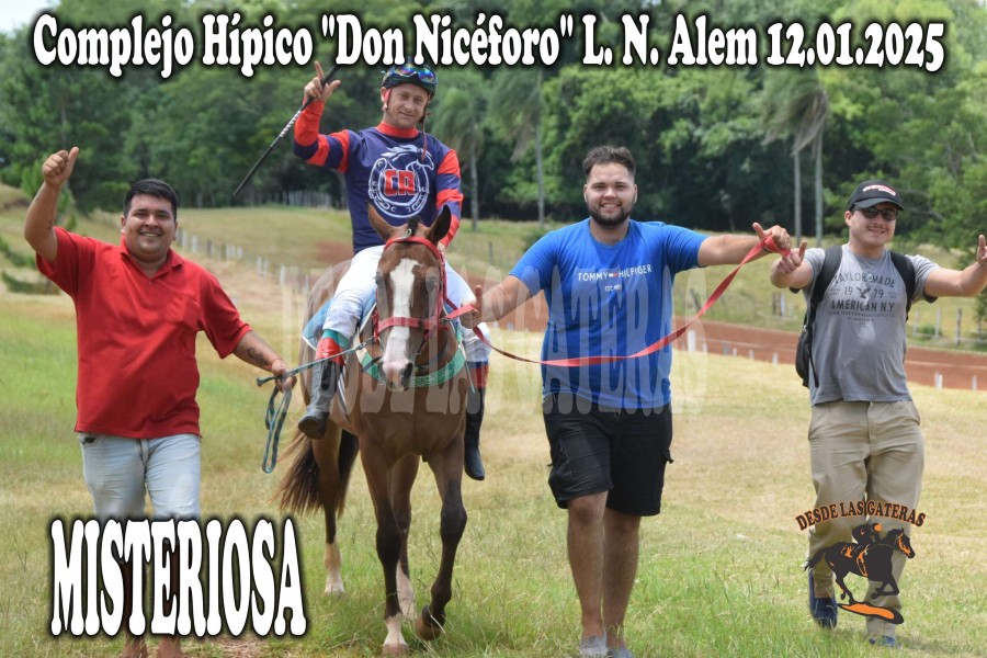 MISTERIOSA – HÍPICO DON NICÉFORO 12 DE ENERO 2025 Ene 30, 2025 | VIDEOS HÍPICO DON NICÉFORO, LEANDRO N. ALEM, MISIONES, 12 DE ENERO 2025 REVELÓ EL MISTERIO Y ganó de punta a punta en la primera de la tarde. La yegua de CARLOS ALEGRE y que llevó a la victoria ERNESTO VELAZQUEZ, marcó claras diferencias y venció con amplitud