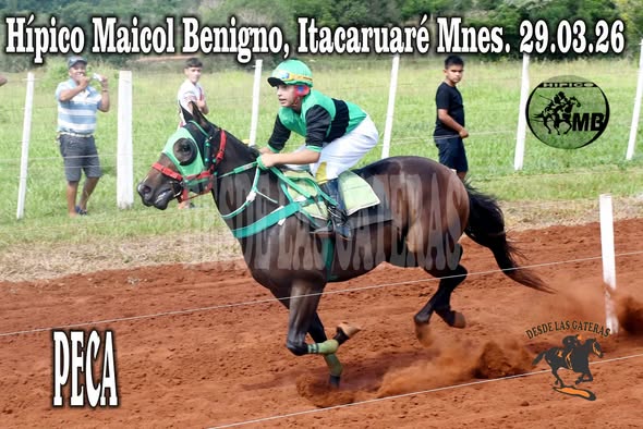PECA – HIPICO MAICOL BENIGNO, ITACARUARE, MISIONES 29.03.2026 Abr 11, 2026 | RESULTADOS, Sin categoría PECA Y UN DEBUT CON ÉXITO… Todo triunfo sirve amen de como se haya logrado, ya que su rival tuvo enormes dificultades en el lanzamiento.