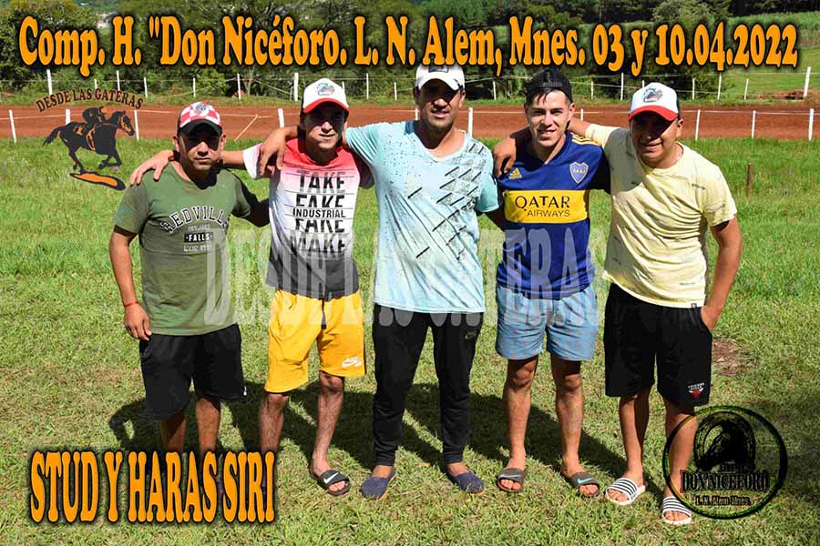 Polla de potrillos C. H. DON NICÉFORO L. N Alem, Mnes. Abril 2022 Mar 25, 2022 | NOVEDADES POLLA DE POTRILLOS C. H. DON NICÉFORO… LOS PROTAGONISTAS… STUD y HARAS SIRIA – JOSE LUIS AGUIRRE – JESSIE PYC FSF – ESPERTA GOLD – EMI JQM