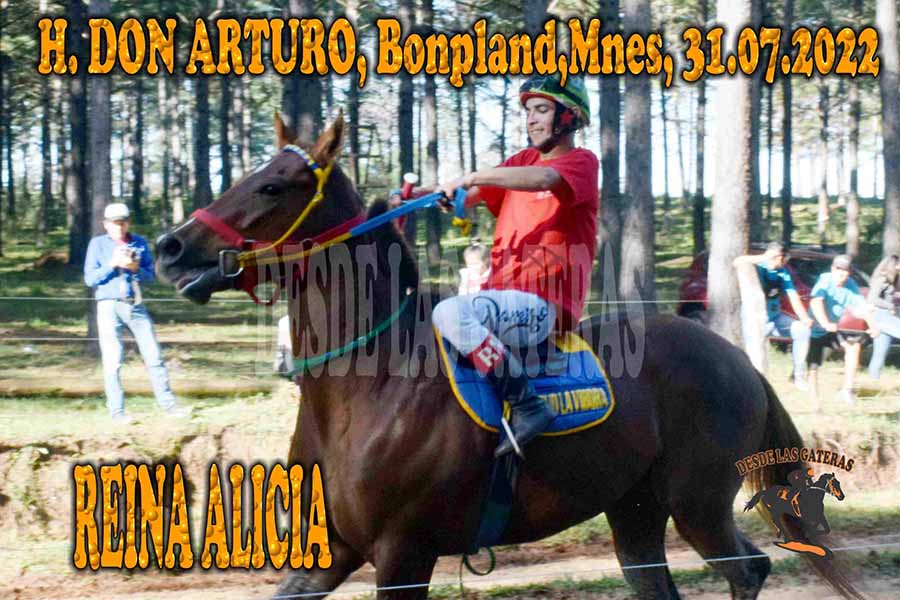 REINA ALICIA – DON ARTURO – 31-7-22 Ago 8, 2022 | RESULTADOS HÍPICO DON ARTURO BONPLAND, MISIONES, 31.07.2022 DESAFIO TAITA REINA ALICIA SALVADOR REINA ALICIA AL TOPE