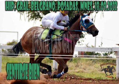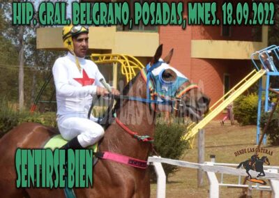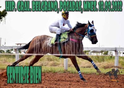 SENTIRSE BIEN – GRAL BELGRANO – 18-9-22 Sep 19, 2022 | RESULTADOS 5ta carrera Ganador SENTIRSE BIEN de DE LA CRUZ de SAN JOSE