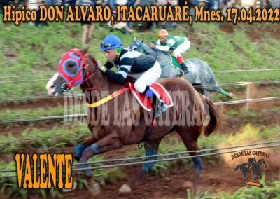 VALENTE – DON ALVARO 17-4-22 Abr 18, 2022 | RESULTADOS Hípico DON ALVARO, Itacaruaré, La recta convocante misionera CLASICO CENTRAL, VALENTE – COCODRIDO… VALENTE POR DEMOLICION…