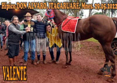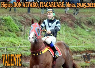 VALENTE – DON ALVARO – 29-5-22 Jun 6, 2022 | RESULTADOS HÍPICO DON ALVARO ITACARUARÉ, Misiones 29.05.2022 CLASICO – KALANDRIA – VALENTE DE RACHA VALENTE