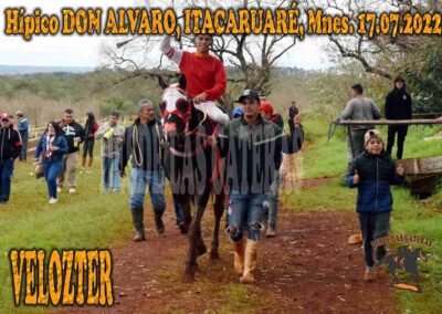 VELOZTER – DON ALVARO – 17-7-22 Jul 21, 2022 | RESULTADOS HÍPICO DON ALVARO ITACARUARÉ CLASICO – SANMARITANO – VELOZTER VELOZTER MARCÓ EL CAMINO
